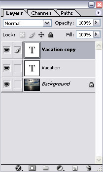 - You should now have two text layers – “Vacation” and “Vacation copy”. You probably won’t notice any visible