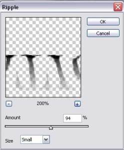 - Create a ripple effect using Filter > Distort > Ripple. Ripple size set at small and amount about 94.