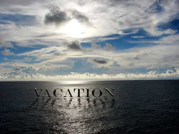 This graphic gives you an idea of what went into our final image – you have the main photo on your background layer, another layer with the shadow of the word “Vacation”, and the top layer is the upright solid word “Vacation”.