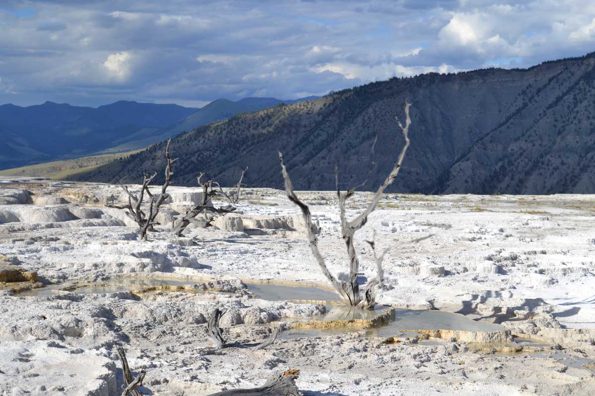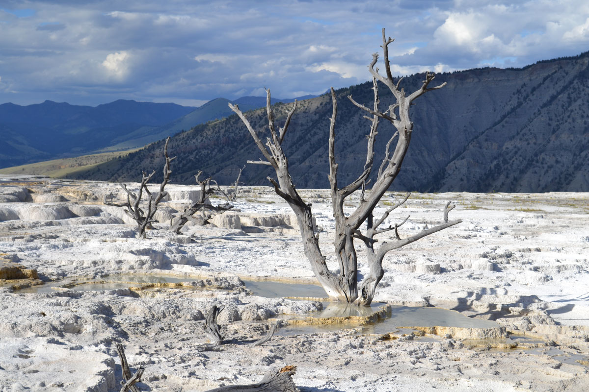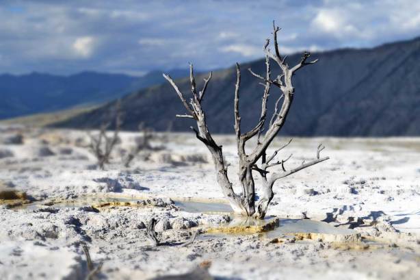 We’re going to take an image that a friend of mine provided which was taken in Yellowstone National Park at Mammoth Hot Springs. While it is a pretty cool picture, I wanted to see what the effect would be if the tree were in focus and the background sky and mountains were blurred. So load up the picture (Original image is at the bottom of the post) and let’s get blurry…