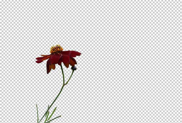 - Start by selecting the flower and some of the stems and grass – I used the magic wand set with a tolerance of 50. This setting controls how picky the selection is. If you set this to zero only pixels that match the tone of what you click on will be selected. Also click the Contiguous check box – this makes it so that only pixels adjoining the one you choose are selected.
