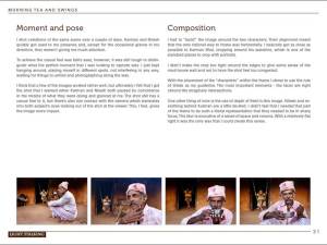 he has shared the experience in an instructional format providing a wealth of background information on his approach to “getting the shot”. For each of the ten excellent images in the book the reader is given insight into dealing with shooting in a foreign country and working with an interpreter, reasoning and vision for the image, lighting diagrams and posing considerations, challenges in getting the shot and details on workflow and post-processing in Lightroom and Photoshop.